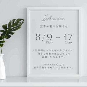 夏季休業中のお問い合わせは、2025年8月18日月曜日以降、順次対応させていただきます